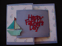 There are two "bases" which you will cut in the solid cardstock. One is Large (8 1/2" x 4 1/4") and one is Small (7" x 3"). Then 3 "covers" are cut from the contrasting or coordinating print for placement on the "bases". You can see this best from the pictures above. You cut the two bases, then score and fold the larger base at 5 1/2 ", and score and fold the smaller base at 3 1/2"). Then adhere the pattern or contrasting paper to the bases, then attach the smaller base to the larger base to create the card. You then can apply a die cut or some other element to the side of the card to "hold" the card closed if you want (see post below of cards Kaitlyn and I did, one has a duck and the other a boat holding the card "closed".) Notice on the cards that Kaitlyn and I did that we also Did Not use the contrasting paper on the very top of the small base. So feel free to mix it up and use it or not on any of the three places it is cut for! Download the .cut file for the Expression Joy Fold Card. Download the .cut file for the Small Bugs Joy Fold Card. Remember, both use the George cartridge! Feel Free to modify to use another of the Shapes Cartridges if you don't have George! There are no die cuts for "holding" the card closed. Just pick what you want! I believe Kaitlyn's duck was cut at 2 or 3 inches and the boat was 3 I think. You will just have to play around with size to see what works for your element. You can find the original idea and instructions on the Splitcoaststampers site along with a photo gallery of lots of these cards.